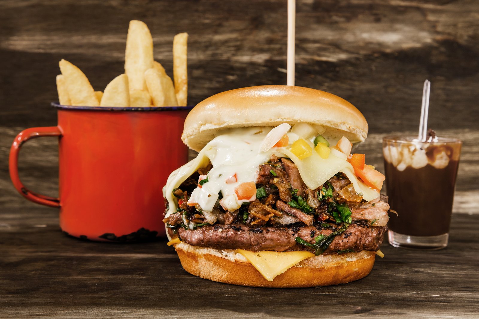 - Opção 2 – Cupim Burguer: Pão crocante, hambúrguer de 190g de cupim, queijo provolone, molho de mostarde e mel, rúcula e maionese de ervas finas. Acompanha mandioquinha frita com bacon.