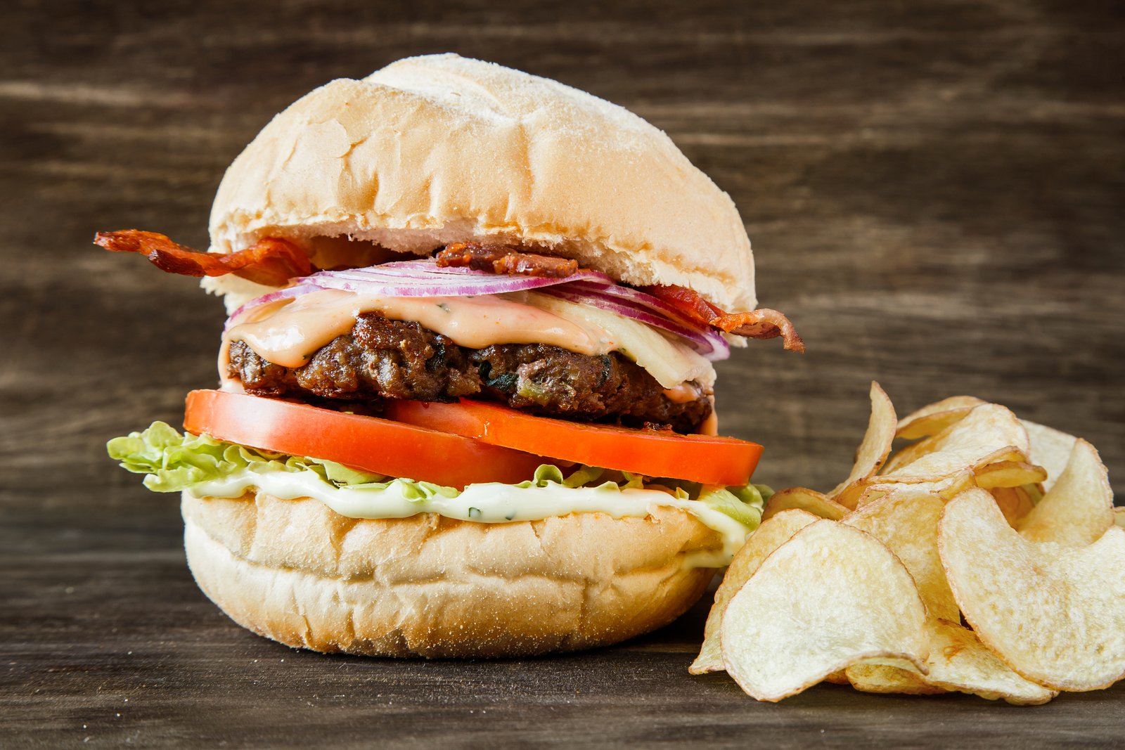 - Opção 2 – Bulls Bacon Sweet: Pão de brioche, hambúrguer de picanha 200g, cheddar fatiado, tomate em fatias, melado de bacon, creme de queijos e molho chipotle. Acompanha batata de corte especial.