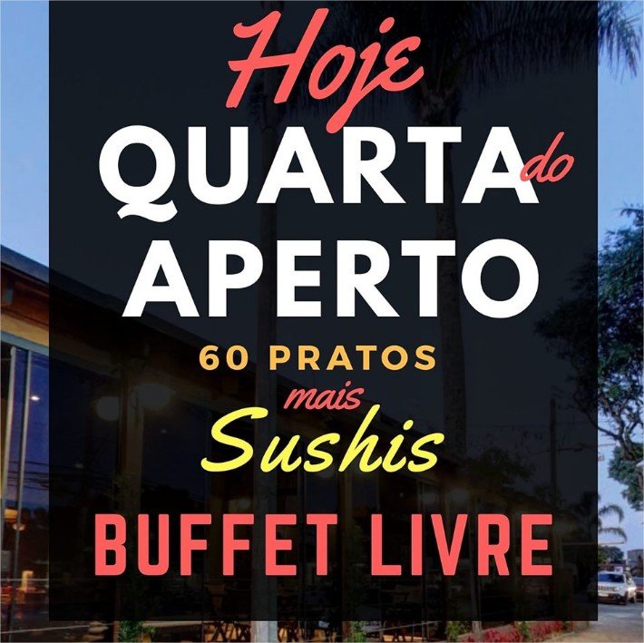 Inclusive, hoje tem o evento #NoiteQuartadoAperto com buffet livre por preço de porção com 60 pratos Clássicos de Bar e Sushis por R$34,90. A noite terá música ao vivo, promoção com balde de cerveja Cacildis e chopp em dobro.